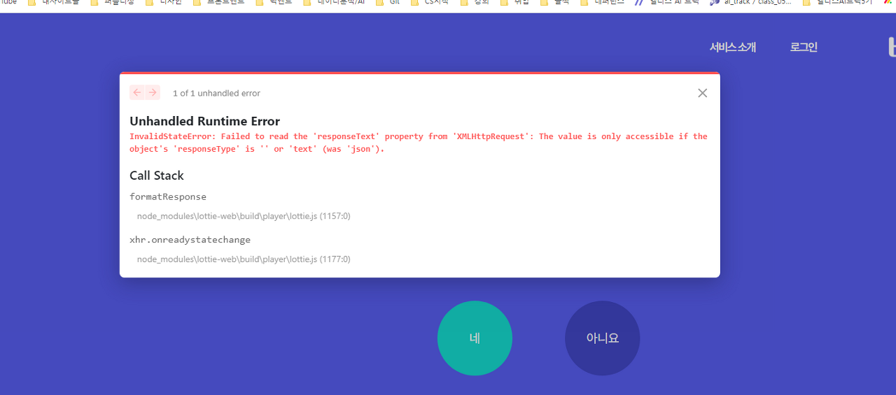 랜딩페이지에 들어가있는 lottie에 해당하는 json파일 경로(localhost:3000/static/lottie/tory_white.json)를