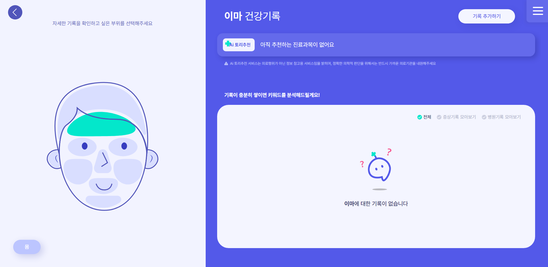 - 기록확인-대시보드 페이지에서의 신체의 포지션(앞,뒤,얼굴)이 그대로 기록확인-차트 페이지에서 보여져야 한다.
