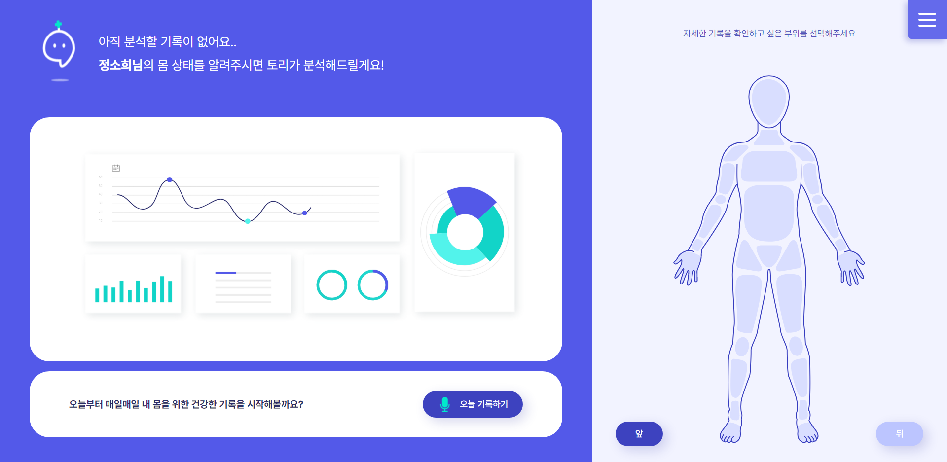 이유는 기록확인-대시보드 페이지에서 어떤 신체부위를 클릭하면 기록확인-차트 페이지로 이동하되