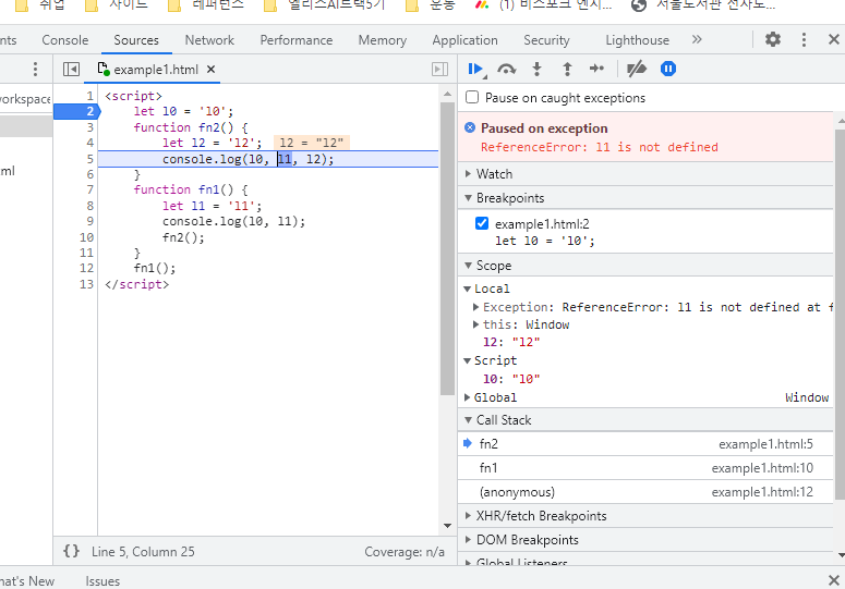 fn2를 fn1안에 작성하고 실행해보면 에러가 나지 않는다.
