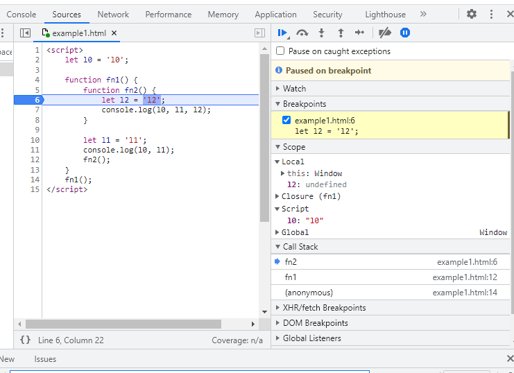 l1은 fn2의 execute context에서 scope chain에 존재하지 않는다.