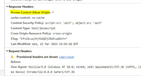 이 두개의 헤더가 같으면 브라우저는 같은 출처라고 인식한다.