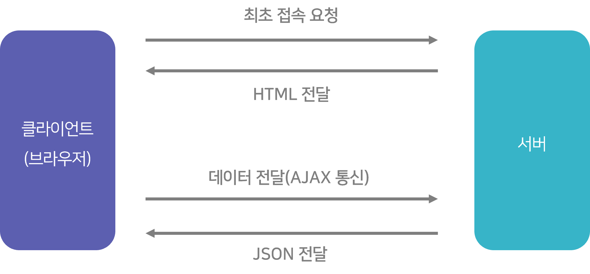 : 최초에 서버로부터 HTML을 전달 받고, 페이지의 변경이 필요할 때 변경이 필요한 부분을 JSON 데이터로 전달 받는다.
